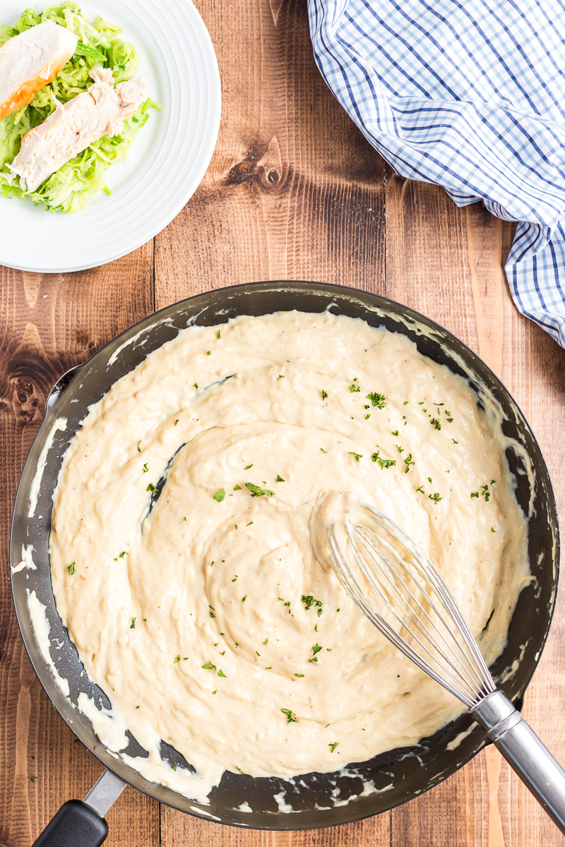 Traditional alfredo sauce breaks when reheated but this one makes great leftovers.